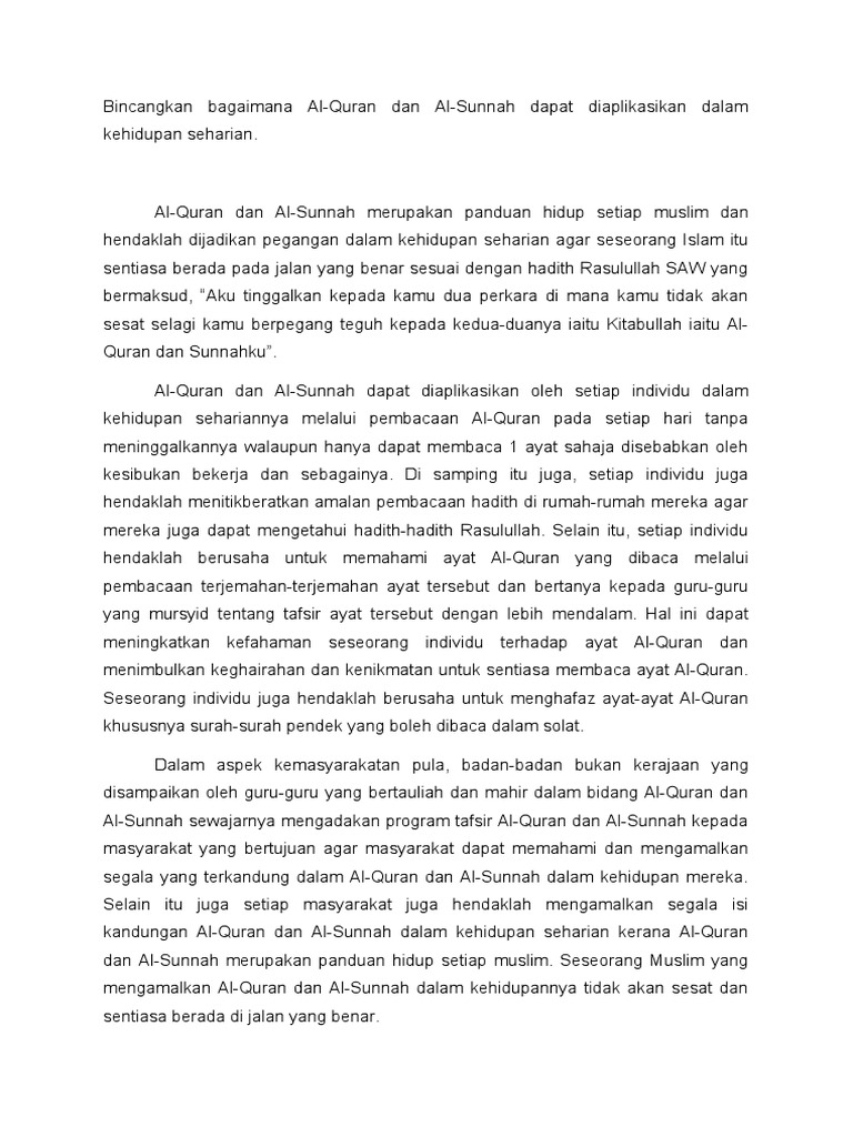 Pengaplikasian Al Quran Dan Al Sunnah Dalam Kehidupan Seharian Pdf
